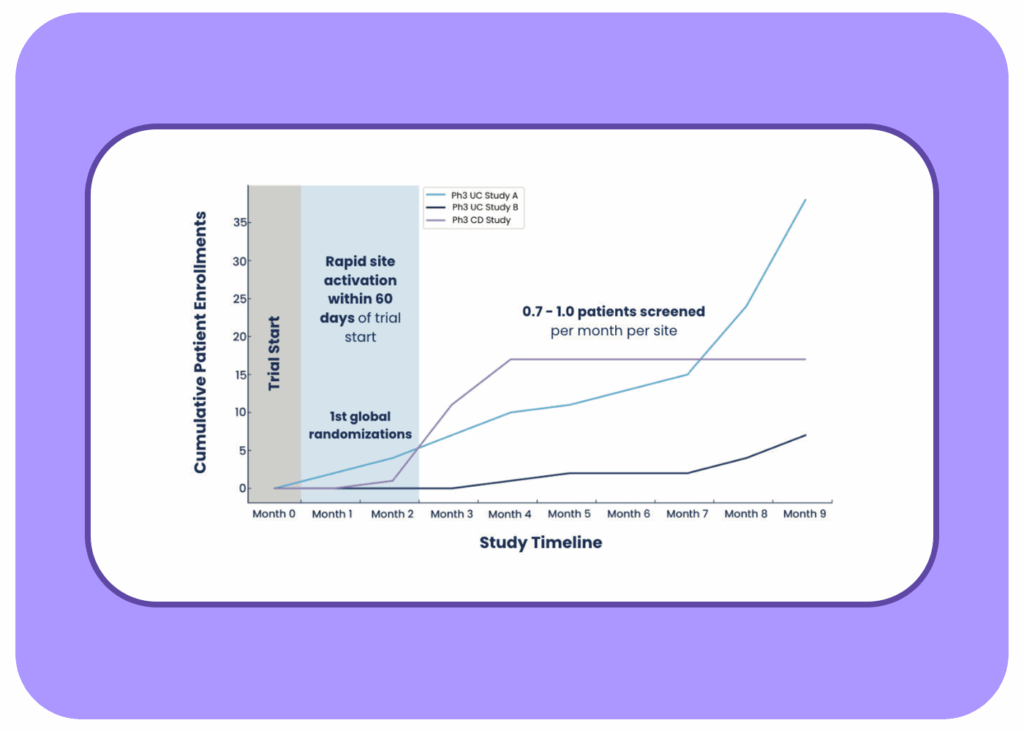 Discover how a leading pharmaceutical company partnered with Iterative Health for three Phase III studies. Sites were activated in under 60 days, achieving first-in-world randomizations and setting a new standard for trial execution.